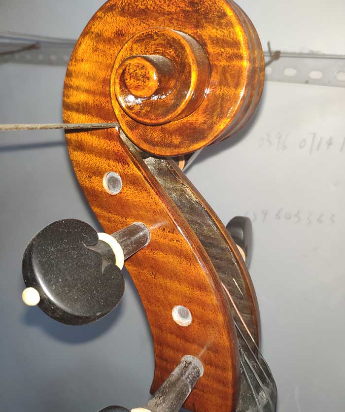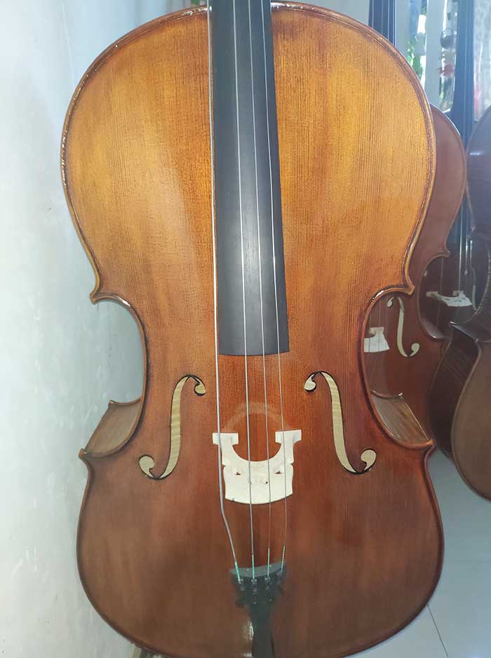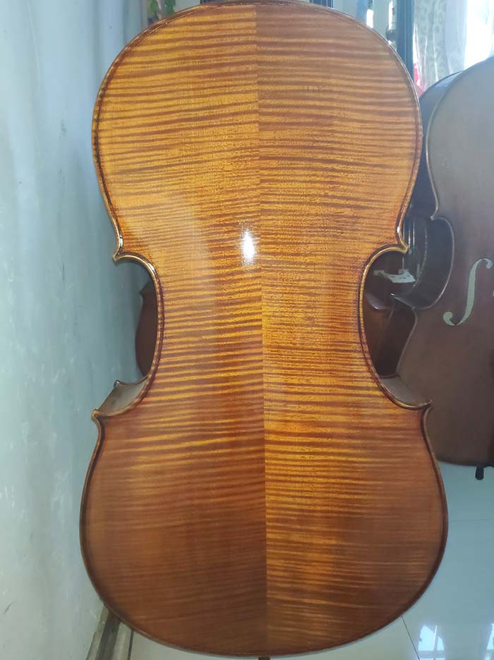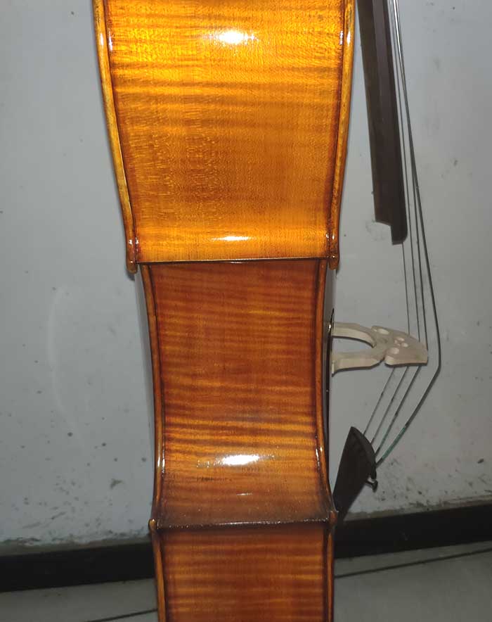 描述:這把琴的質感非常好,純歐料的一把大提琴,從圖上大家可以看出,這把琴的選材是非常講究的,整體看上去沒有任何瑕疵,而且木質相當的均勻。