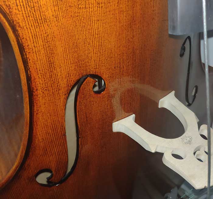 此工藝琴的面板和背板選自進口的優質云杉和楓木,自然干燥十二年,應用傳統琴的意大利制琴方法,并與現代高科技結合(從對木材的選擇到整個制琴的全過程全部應用高科技跟蹤測試,比如:對木材的傳聲速度,振動頻率以及波形等等)經過純手工六個月制作完成,最后經過嚴格的聲學品質測試和演奏人員鑒定后方可出售。