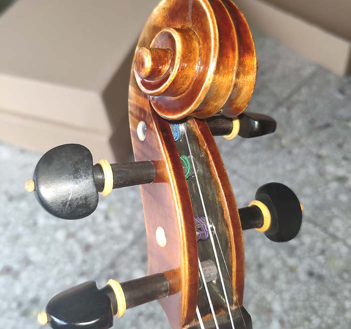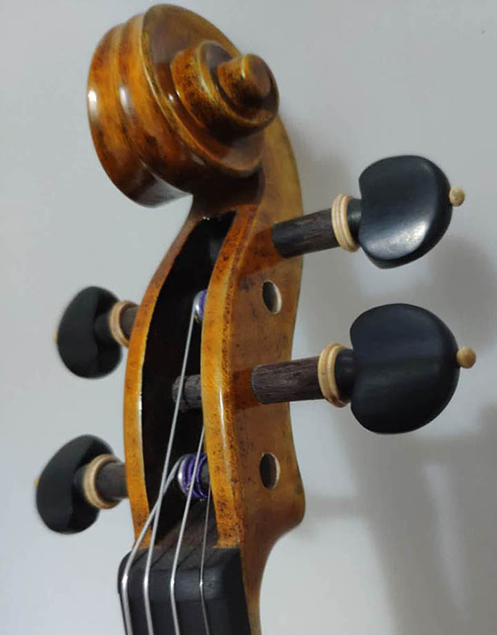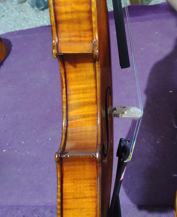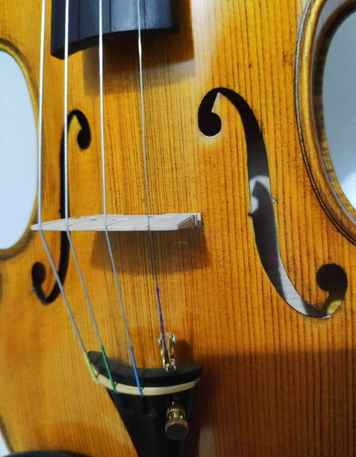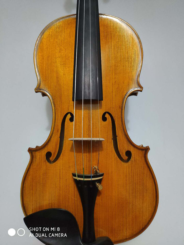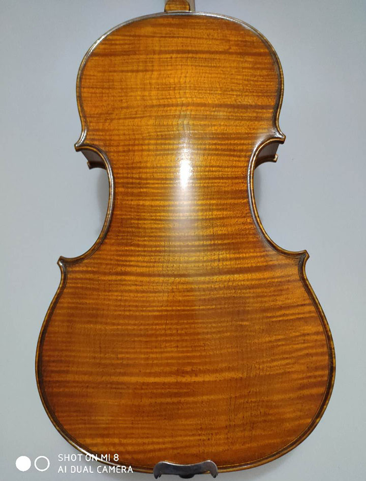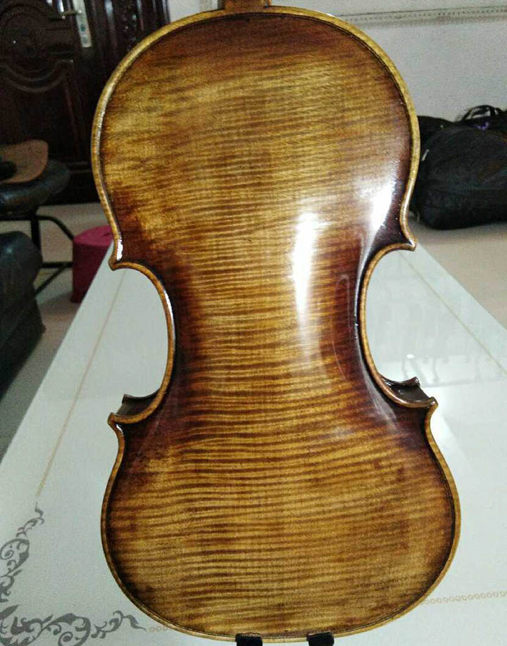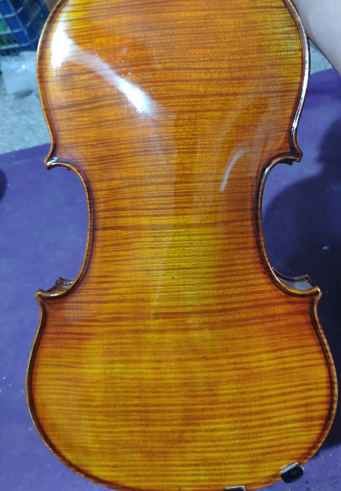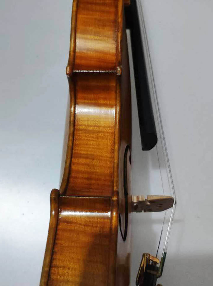 八年以上自然風(fēng)干,面板年輪均勻,背板花紋美觀,市場(chǎng)上幾乎稀少,由有著20年經(jīng)驗(yàn)的制琴師親自制作,15道手工油漆,該琴發(fā)音輕快、有力,低音渾厚,高音區(qū)發(fā)音流暢,該琴是樂(lè)團(tuán)、樂(lè)隊(duì)專(zhuān)業(yè)演奏員理想的用琴。