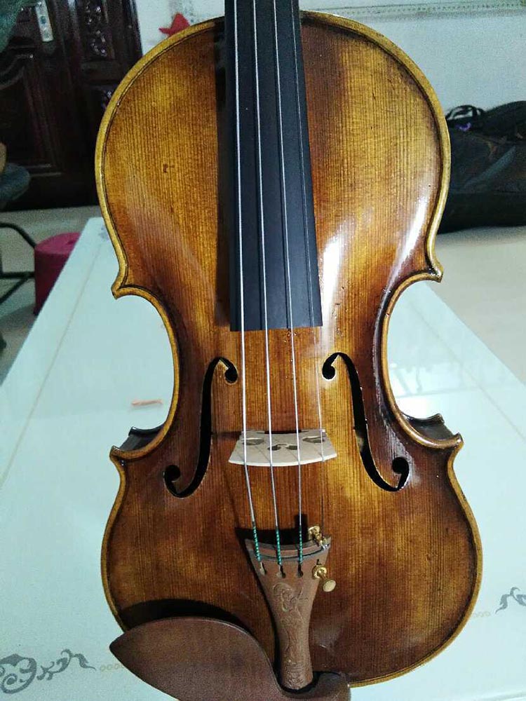 描述:正如大家所看到的的一樣,這把琴有著非常美觀的外形,這取決于它的選材和油漆,背板的花紋看上去非常的自然和諧,面板木紋之間的距離都在2毫米左右;采用亮光的酒精漆,防舊復(fù)古的風(fēng)格更是賦予了這把琴以神秘感。這把琴雖然看上去很硬,但聲音確是非常的柔美,堪稱(chēng)是一把非常不錯(cuò)的演奏級(jí)小提琴。