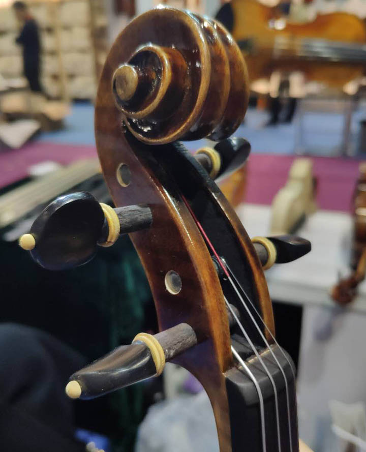 油漆:秘制半油性漆? ? ? ?型號:4/4 3/4 1/2 1/4 1/8? ? ? 指板:烏木? ? ?價格:25000元? ??琴碼:楓木琴碼