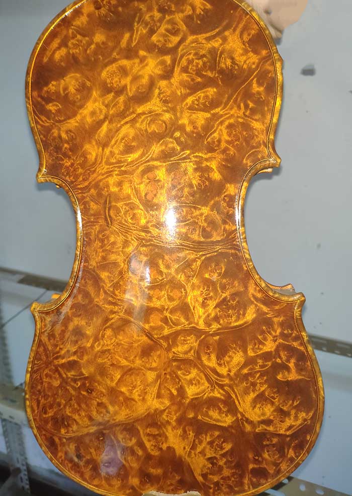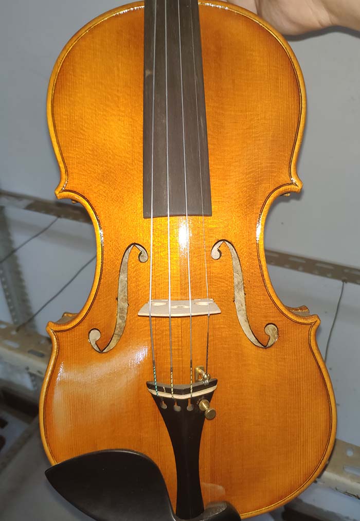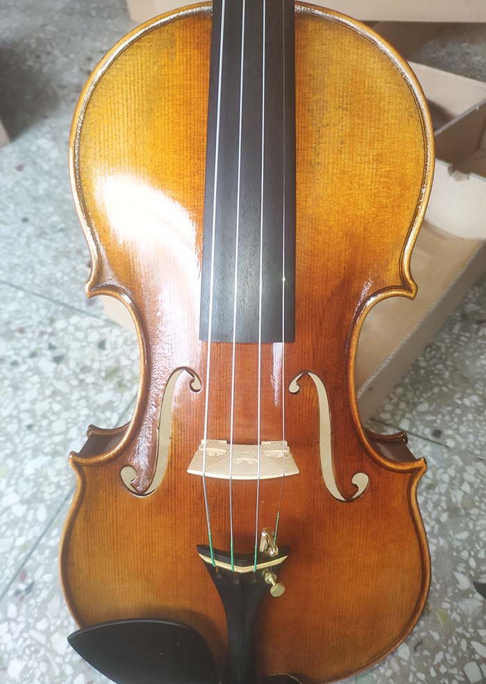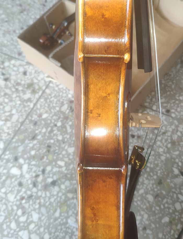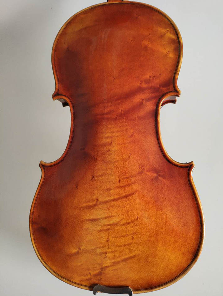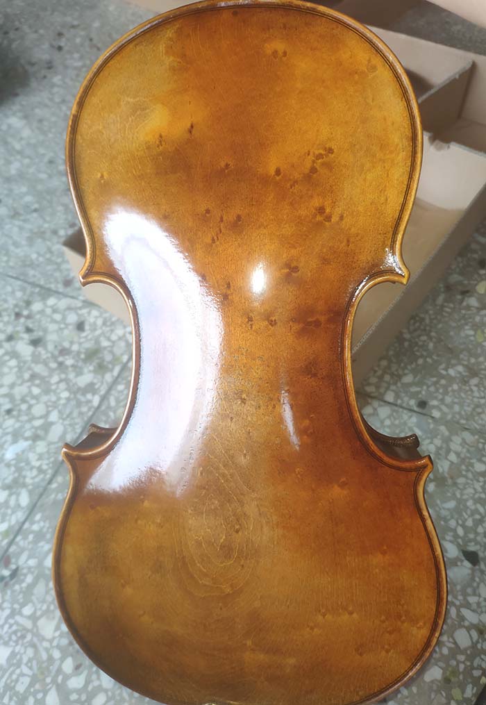 描述:背板是意大利的雀眼花紋的楓木,雀眼并不算很多,面板木質(zhì)均勻,木紋的平均寬度在2.5毫米左右。油漆采用仿舊風(fēng)格,顏色有深有淺,質(zhì)感非常好。這把琴的聲音比較清晰干脆,婉轉(zhuǎn)悠揚,非常適合專業(yè)演奏和練習(xí)使用,更是當(dāng)做禮物來贈送的不二之選。